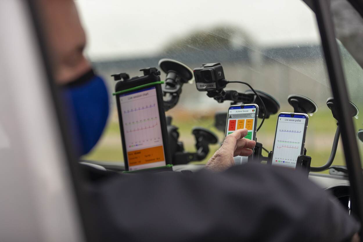 Vanuit een commandovoertuig houdt Bek een oogje in het zeil. Het Fieldlab monitorde de trainende leden van het speedmars-team onophoudelijk.