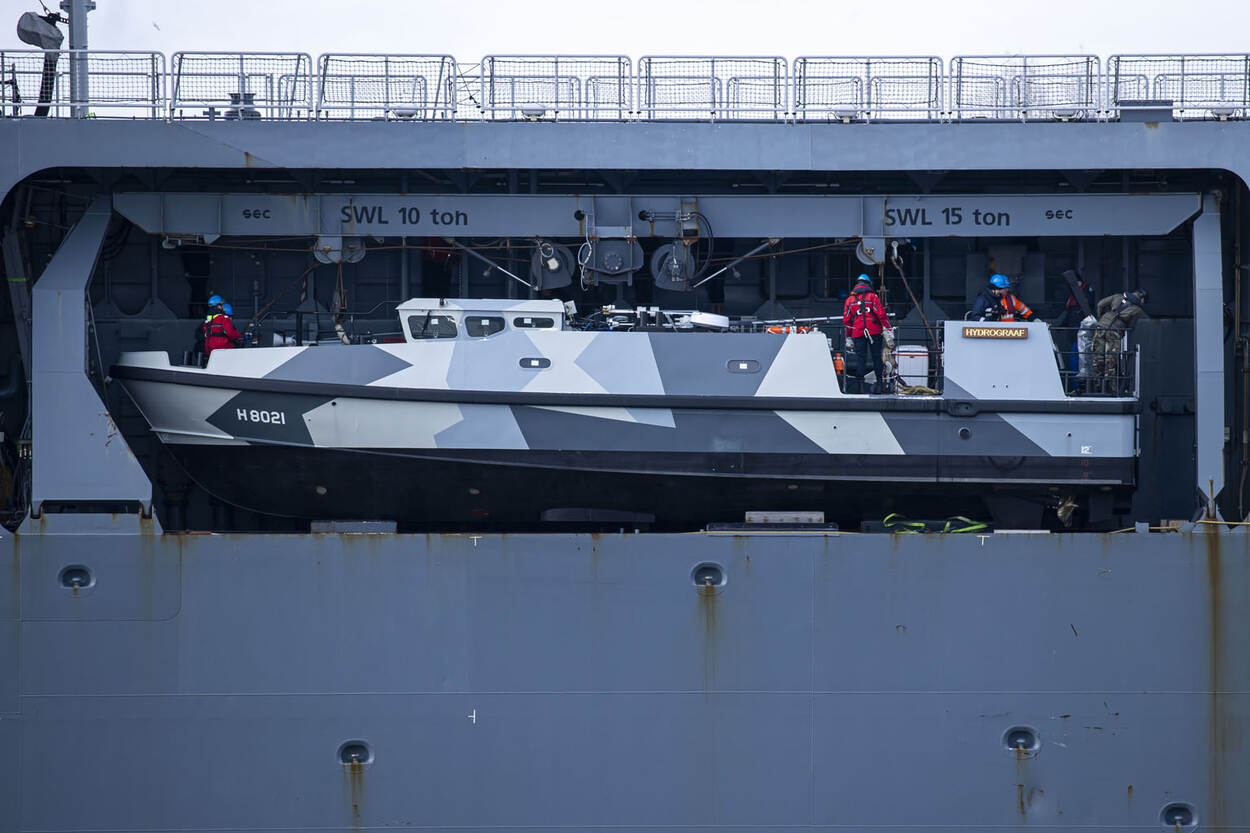 “Door 2 hydrografische sloepen”, vervolgt De Laaf. “Die gingen mee met de Landing Platform Docks en konden daar vanaf opereren. De sloepen konden nooit lang en ver weg blijven. Beide sloepen zijn inmiddels zwaar verouderd en worden afgestoten.”