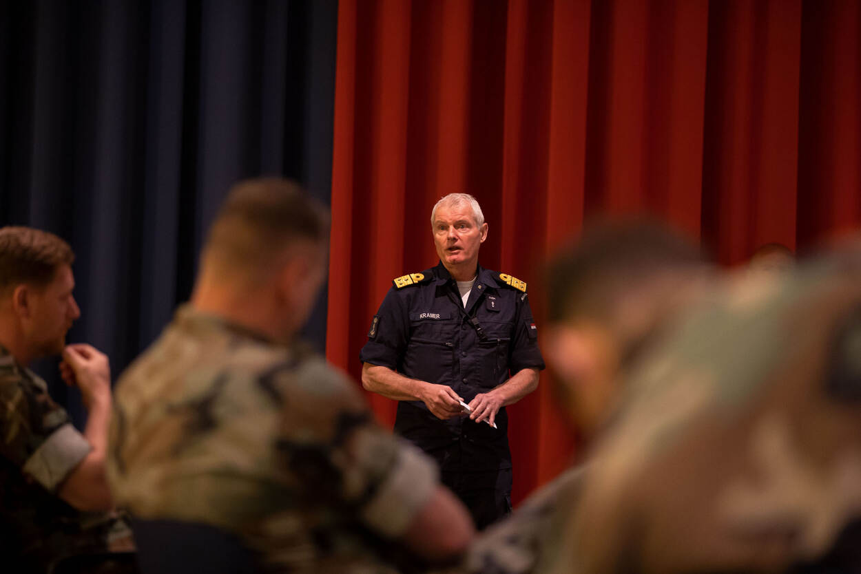 Kramer sprak zijn waarschuwende woorden maandag bij het Mariniers Opleidingscentrum op de Van Ghentkazerne in Rotterdam. Hier streek hij neer met zijn Roadshow, een initiatief om personeel in coronatijd op de hoogte te stellen van wat er speelt bij het varende krijgsmachtdeel. Vaste sidekick is Chef d’ Equipage CZSK adjudant TD Jack Gouda. Het tweetal heeft al een aantal sessies bij de marine-etablissementen achter de rug.