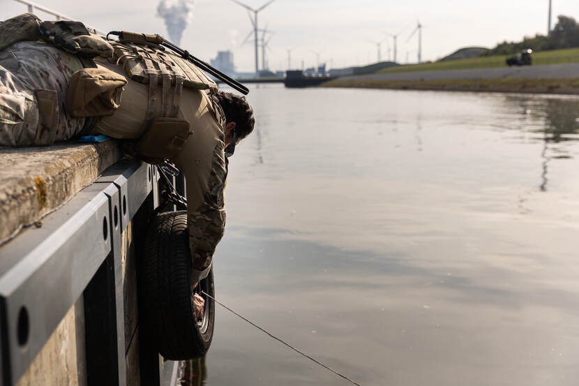 Opmerkelijk is verder dat in Eemshaven op bescheiden schaal onderwater explosieven gebruikt mogen worden, wat in de buurt van kades en installaties vrij ongebruikelijk is. Uiteraard worden wel de nodige voorzorgsmaatregelen getroffen. Om het zeeleven zoveel mogelijk te ontzien, ontsteekt men eerst enkele scare charges om dieren te verjagen. De daarop volgende echte klap van een pondje springstof voel je tot diep in je maag. “Deze lading is voldoende het roer van een schip onklaar te maken”, aldus duikmeester en ploegleider EOD sergeant-majoor Toine.