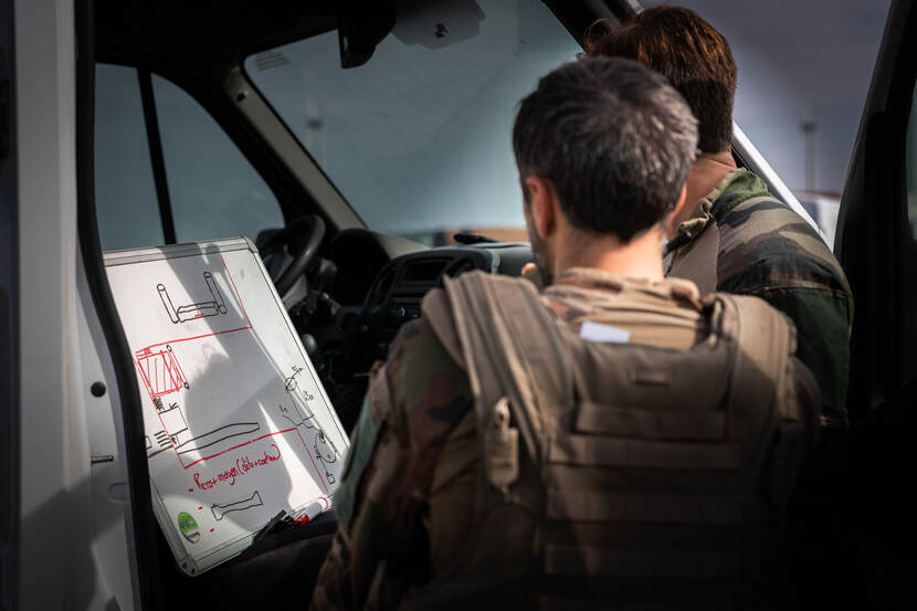 Projectofficier van de havenbeschermingsweek luitenant ter zee 1 René Pouw heeft de uitdaging die Eemshaven hem biedt helder op het netvlies staan. Waar vergelijkbare oefeningen, zoals in Rotterdam, zich afspelen in een klein, afgebakend gebied, heeft de marine bij Sandy Coast een groot deel van Eemshaven in gebruik. Zo is een Amerikaans explosievenopruimingsteam onder leiding van lieutenant Bridgette Barden op een kade bezig met een EOD-verkenningsrobot. Franse duikers ontfermen zich enkele kilometers verderop onder water over het geïmproviseerde springtuig bij de roll on/roll off terminal. “We hebben hier wel de handen vol”, constateert Pouw. “Want hoe houd je continu alle op ondermijning gecontroleerde kademuren, schepen en andere objecten onder waarneming? Hiervoor heb je beveiligingsteams nodig, maar die doen nu niet mee.’