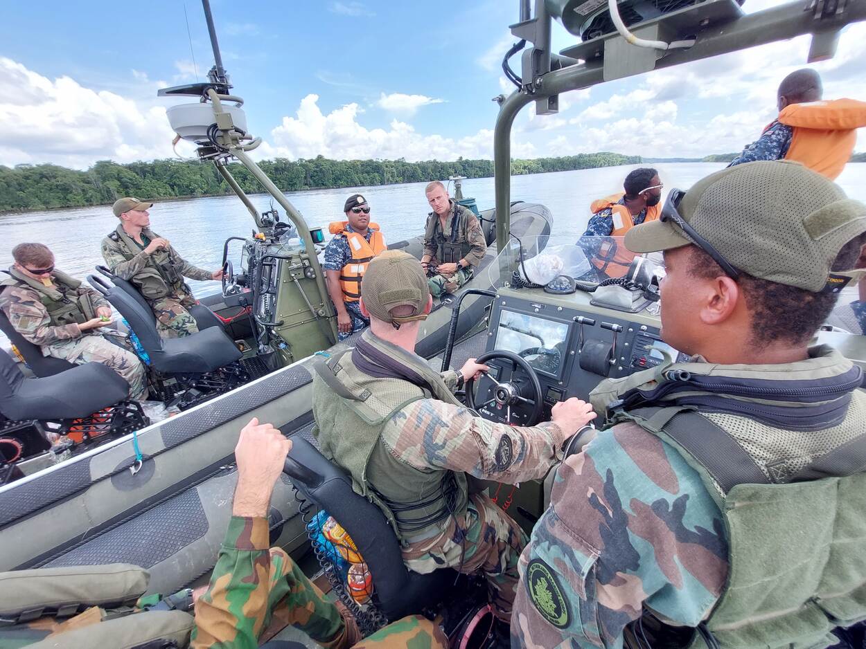 Dat maakt ook dat het bij het bevaren van de Surinaamse wateren vooral bij verkenning blijft, vertelt Van Gent. “Als Nederlandse militairen hebben wij onze eigen procedures en zijn wij gewend deze toe te passen, ook bij optreden in internationaal verband. Je merkt dat er een niveauverschil bestaat, zowel op het gebied van vaardigheden als in materieel opzicht. Daarom verkennen we nu vooral de omgeving en ontplooien we hier en daar wat acties. Echt de diepte ingaan met het aanleren van skills & drills, daarvoor zijn 2 dagen echt te kort.”