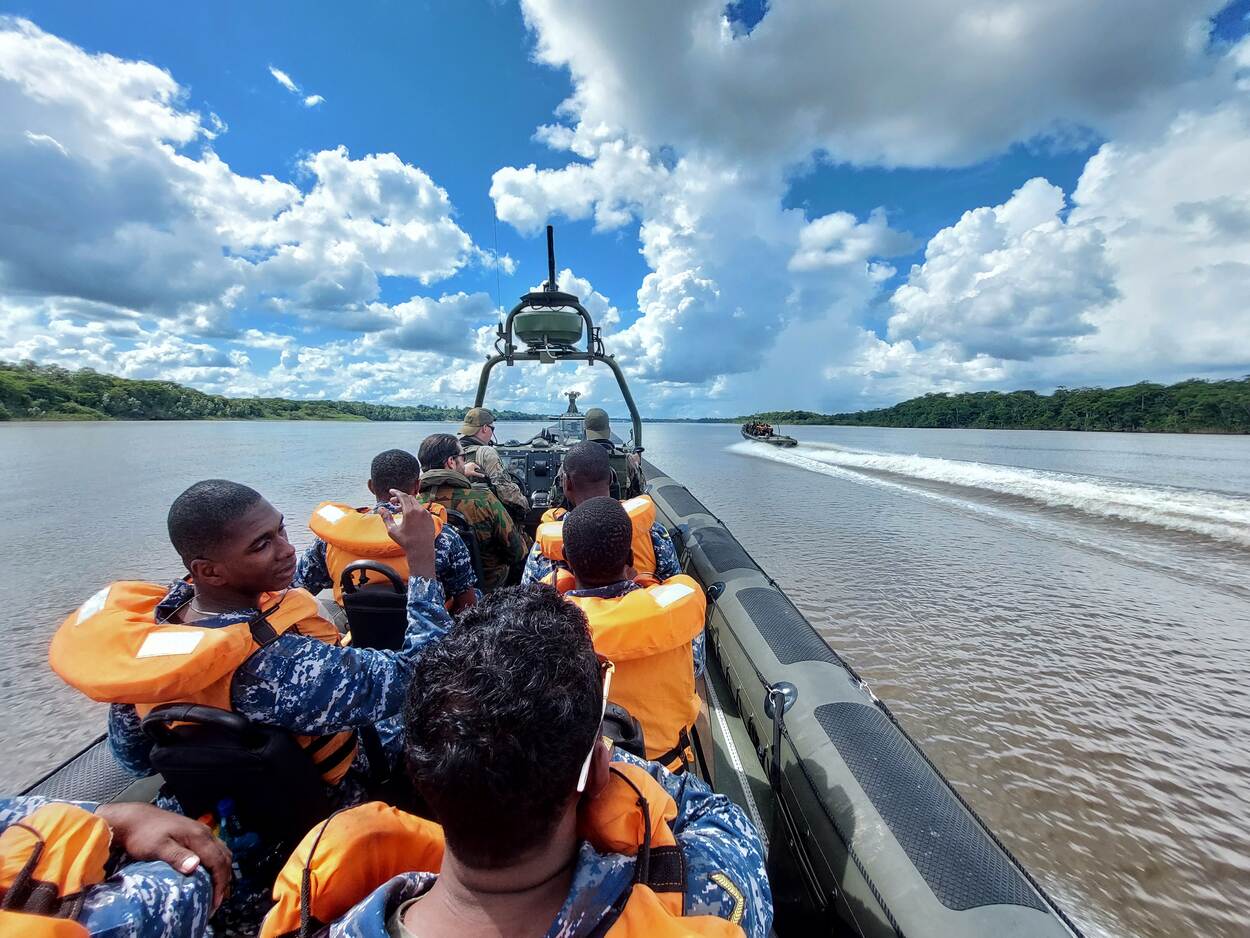 Op het programma tijdens deze eerste gezamenlijke vaartocht: rivierverkenningen met marine-infanteristen van het Surinaams Nationaal Leger en de Surinaamse Kustwacht. Meer samenwerken is de hoofdmoot. “Voor nu betekent dat vooral formatievaren”, vertelt korporaal van de mariniers Van Gent vanaf zijn FRISC. “We nemen 2 dagen lang een kijkje in elkaars keuken. Socializen, elkaar leren kennen en ervaring in deze omgeving opdoen.”