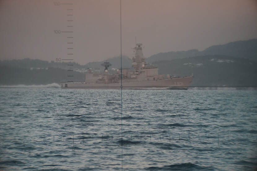 En toen naar zee. Een groot verschil, bekent de Onderzeedienst-overste. “Dat 3 schepen tegelijkertijd écht op je afkomen, met flinke boeggolf, dat doet wat met je. Naast de fregatten van SNMG1 zat er ook kleine ferry van de Noren bij. Echt een rotbootje, dat heel hard op ons afkwam. De cursisten worden zo echt onder druk gezet. Het geeft mij als teacher een goed beeld van hun kwaliteiten. En zelf krijgen ze dan ook snel door hoe goed ze wel of niet zijn.”