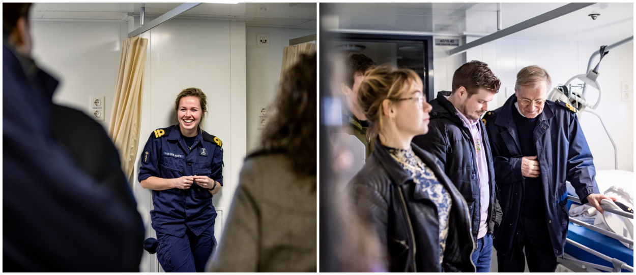Regelmatig worden geneeskundestudenten door De Hosson getrakteerd op een kijkje achter de schermen. Een groepje artsen in spe kreeg vorige week een rondleiding in de ziekenboeg van Zr.Ms. Holland. (Foto’s: SGT-1 Jan Dijkstra)