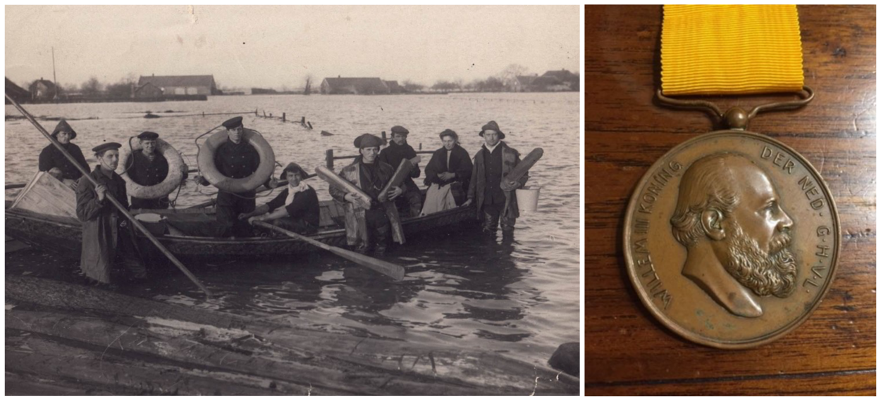 In totaal zetten 300 marinemannen zich in om slachtoffers uit benarde situaties te redden. Onder hen ook De Groot, die op dat moment voor zijn vervolgopleiding tot machinist is ingekwartierd op Hr.Ms. Van Speijk. Zijn steunverlening levert hem zijn eerste onderscheiding op: de Watersnoodmedaille van 1926.