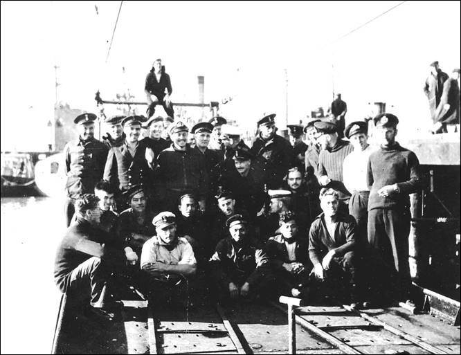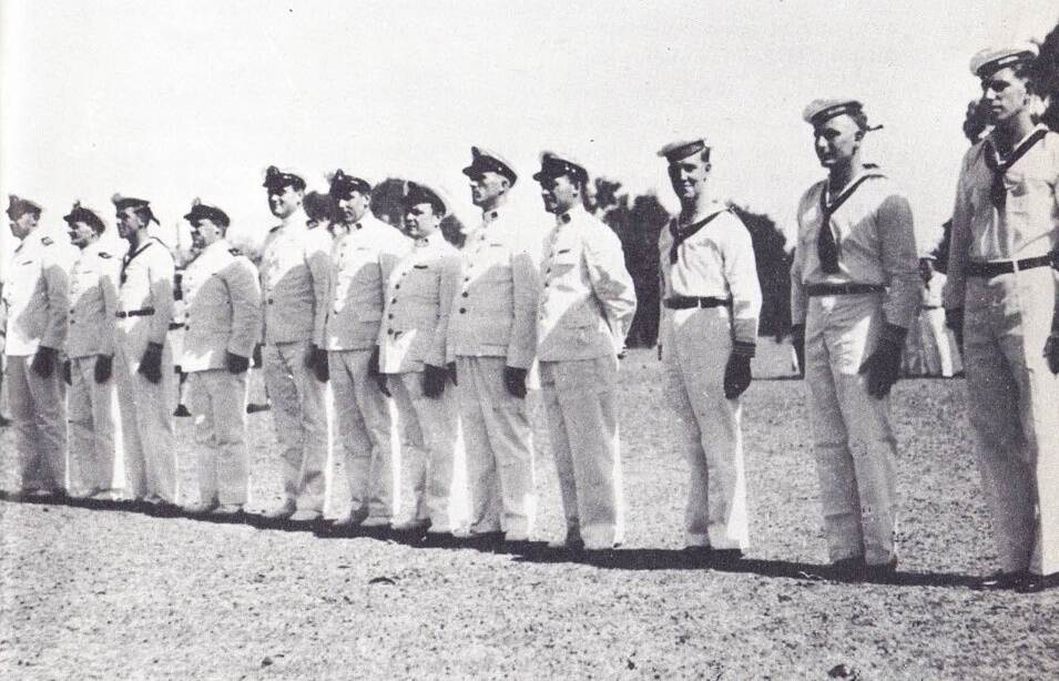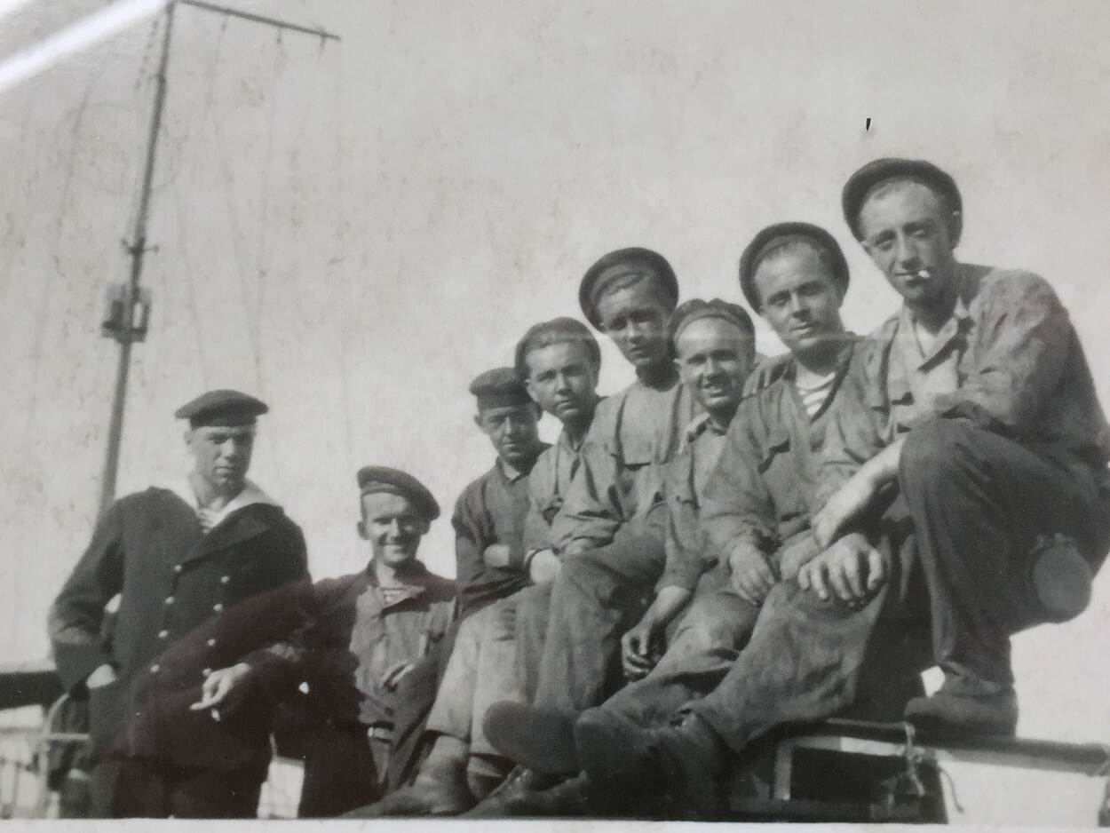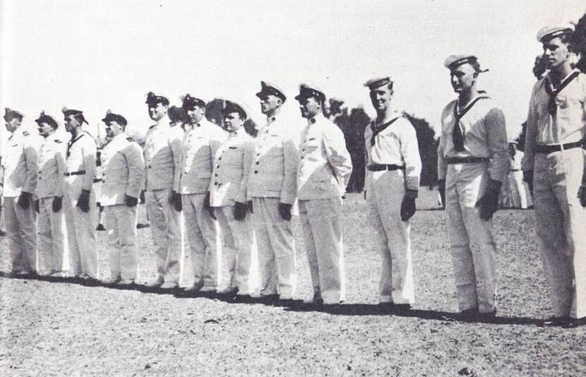 ‘Kruizenparade’ voor 10 opvarenden van de Zwaardvisch. Helemaal rechts: Pieter de Groot.
