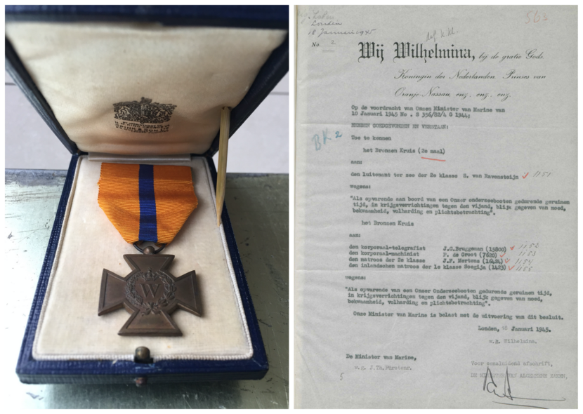 Het Bronzen Kruis van Pieter de Groot met bijbehorend Koninklijke Besluit.
