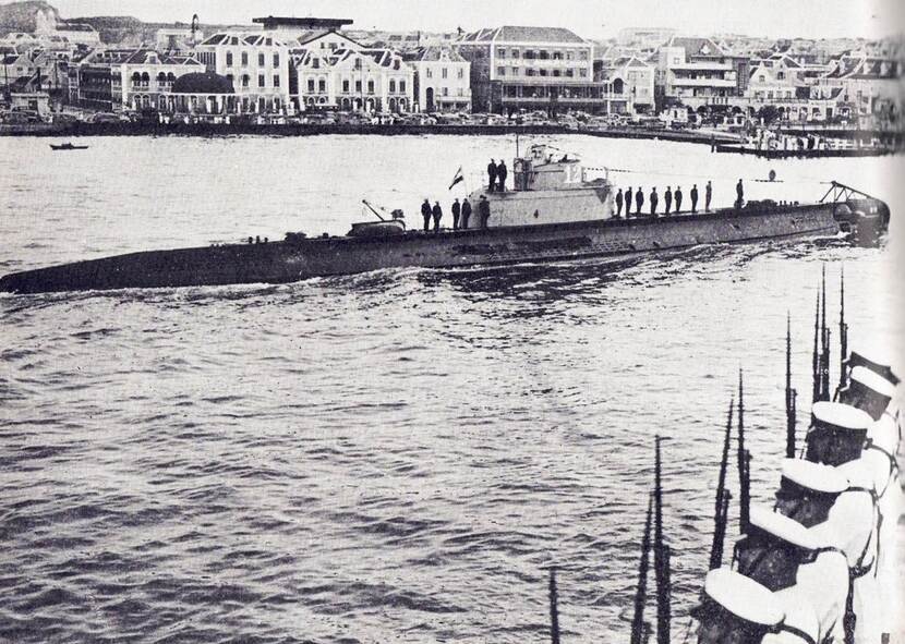 Aankomst van de O12 te Willemstad, Curaçao (1938).