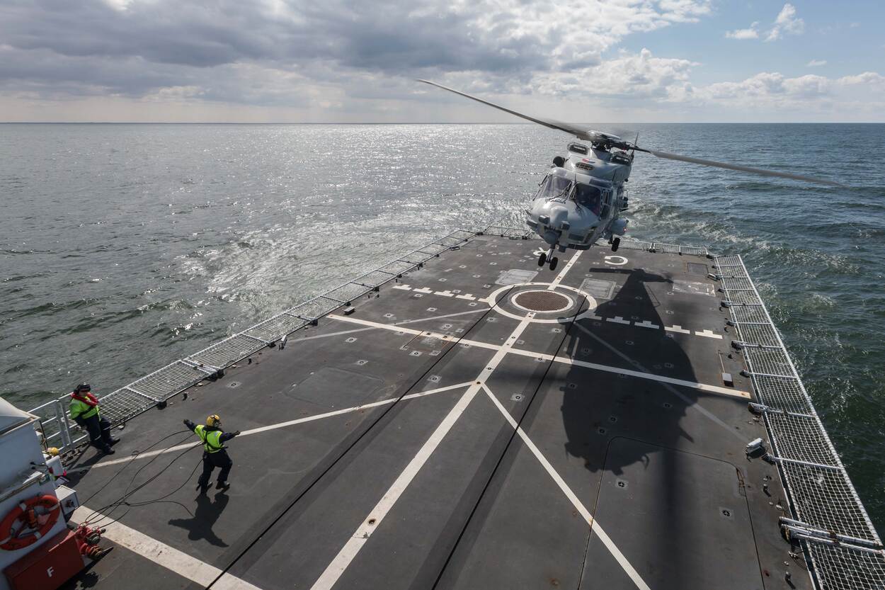 De Hull Vane zorgt voor minder golven en een stabielere zeegang. Ook veiliger voor de crew van de boordhelikopter. (Foto: SGTBDAV Sjoerd Hilckmann)