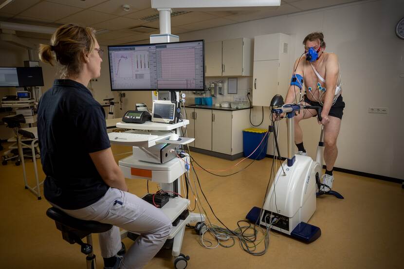 Het jaarlijkse piekmoment in het DMC: het fietsend meten van iemands VO2-max.