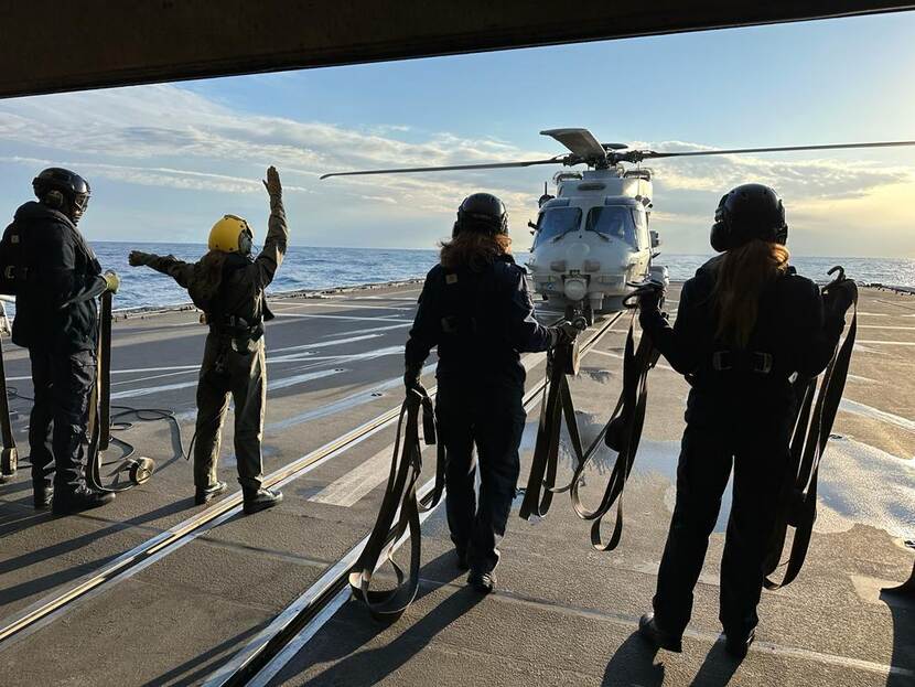 De NH90-boordhelikopter vormt een belangrijke sensor bij het detecteren van tegenstanders.