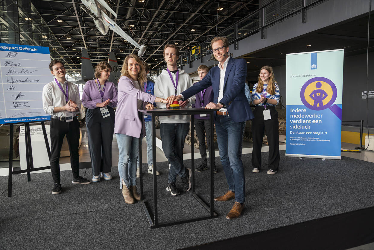 Jaarlijks krijgt Defensie ruim 4.500 aanvragen voor stageplekken van enthousiaste studenten. In de praktijk leidt dit tot 1.200 plaatsingen, terwijl er plek is voor veel meer. Dit is zonde van het potentieel! Minimaal 25% van de stagiaires blijft na afloop van de stage verbonden aan de organisatie. Defensie lanceerde onlangs een interne campagne om het aantal stageplekken voor studenten te vergroten. Staatssecretaris Christophe van der Maat gaf het startsein en tekende het stagepact met vertegenwoordigers van defensieonderdelen. “Nauwe samenwerking, regionaal en sectoraal, is nodig; het stagepact is daarvoor een belangrijke stap.”