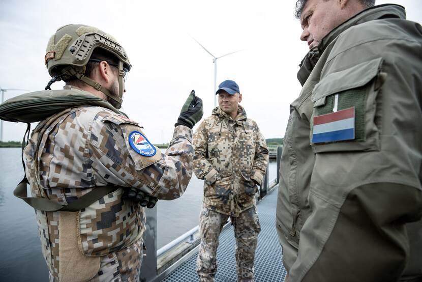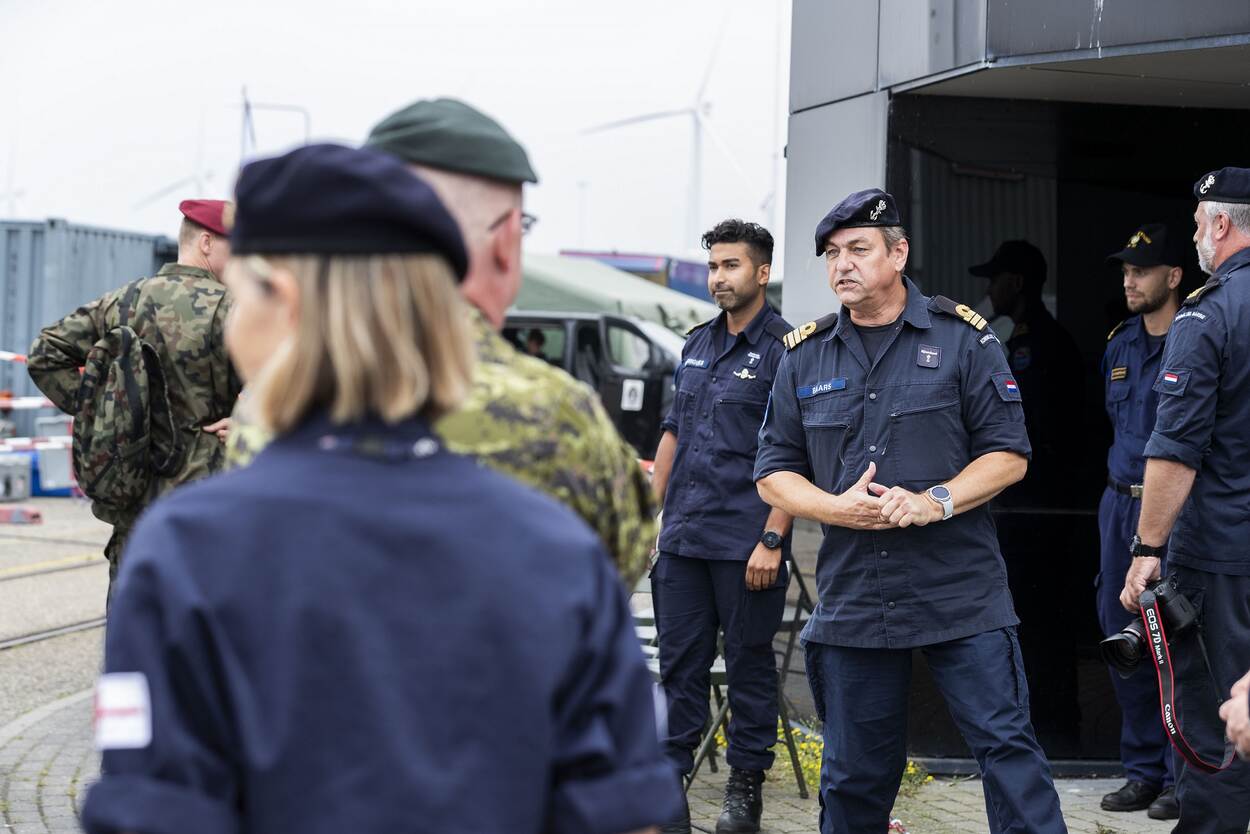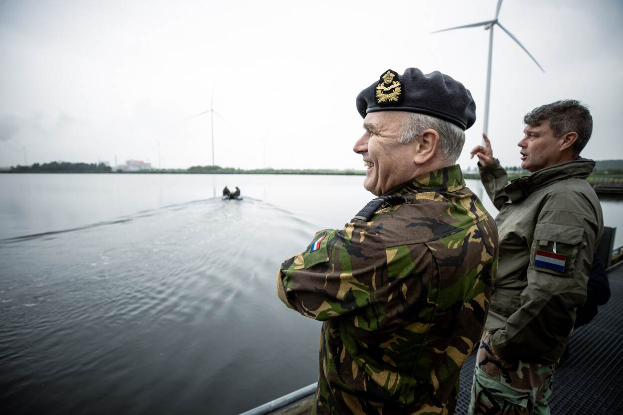 Commandant der Strijdkrachten generaal Onno Eichelsheim nam uitgebreid de tijd om te kijken bij de havenbeschermingsoefening.