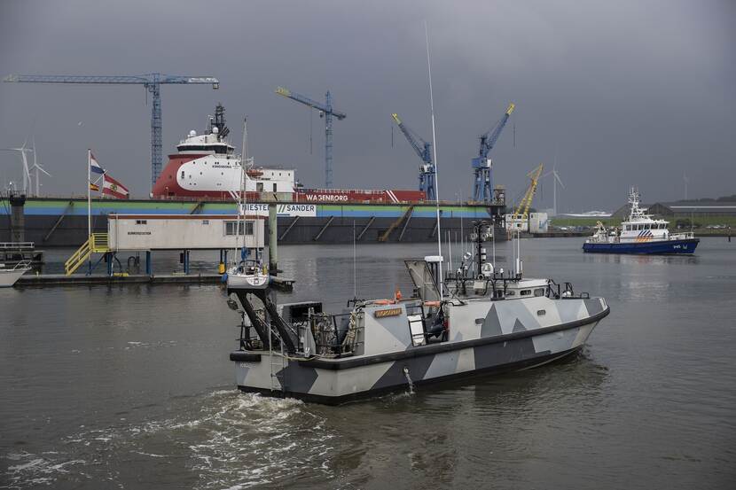 De nieuwe ESB in actie in de haven van Delfzijl. Er werd ook samengewerkt met civiele instanties.