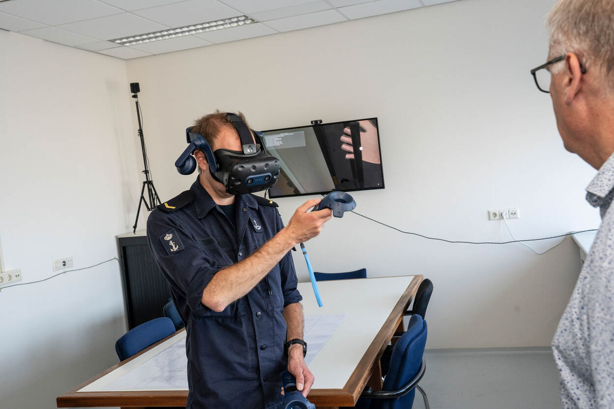 Commandant kapitein-luitenant ter zee Stefjan Veenstra ziet nog meer ruimte voor verbetering. Tot zijn schrik sloeg er een deur in zijn gezicht toen het niet direct lukte de klink vast te grijpen. “Ik schrok ervan, zo realistisch is het. Deze puntjes op de 'i' komen in de laatste fase vast in orde. De grootste winst zit in de basiskennis die de bemanning nu al opdoet. Voor onze eerste vaartocht komen we beslagen ten ijs. Omdat we straks de weg al kennen, kunnen we direct beginnen met het opstellen van de bedrijfsvoering en procedures.” Volgens Veenstra krijgt VR in de toekomst een steeds grotere rol. “Straks kan een monteur van de Directie Materiële Instandhouding (DMI) met de bemanning meekijken. Met virtual en ook augmented reality (hierbij wordt, direct of indirect, een live-beeld van de werkelijkheid gedeeld waaraan de computer elementen kan toevoegen, red.) kunnen collega’s aan de wal een monteur in de machinekamer aan boord op afstand ondersteunen bij een storing."