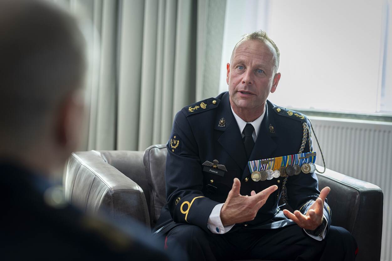 De adjudant ziet het als een zware functie, maar ervaart dat niet als iets negatiefs. “Waar het vooral om gaat is de belangen van de equipage te vertalen naar een hoger dek en om de boodschap van het hogere dek naar beneden door te geven." Een persoonlijke noot: “Ik heb het hart op de tong, nu moet ik soms iets langer nadenken voordat ik iets zeg. Je hebt meer invloed, dus krijgen je woorden een ander gewicht.” De boodschap van het hogere dek, die mag generaal Moerman verkondigen. Daarbij zullen grote uitdagingen aan de orde komen. Nummer 1: het behoud van personeel. “De werving loopt goed en de aanwas is gezond. De zorg zit echter bij het behoud van het personeel. We hebben tekorten bij de korporaals en sergeanten, maar ook binnen een aantal officiersrangen.”