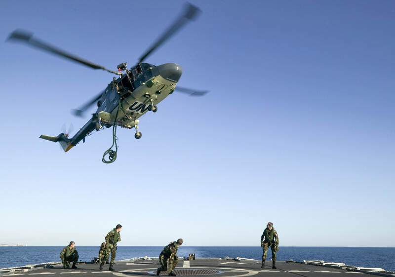 Niet aflatende aanvallen van (inmiddels) Hezbollah zorgden ervoor dat Israël in 1982 en in 2006 Libanon weer binnentrok. De Veiligheidsraad voorzag UNIFIL in 2006 niet alleen van een ruimer mandaat, maar koos ook voor eenheden op zee. “Dit om de illegale invoer van wapens via die weg te voorkomen. De Libanese marine zelf was onvoldoende toegerust om de kustwateren afdoende te bewaken. Het operatiegebied van de Maritime Taskforce (MTF) UNIFIL liep vanaf de Libanese kust tot 50 zeemijlen naar het westen. De Nederlandse regering besloot om het M-fregat Hr.Ms. Van Galen beschikbaar te stellen voor de MTF. Uitvalsbasis werd Limassol op Cyprus.” In december 2006 startte de Van Galen met het aanhouden en controleren van vaartuigen, met uitzondering van grote containerschepen die in de haven van Beiroet konden worden onderzocht.