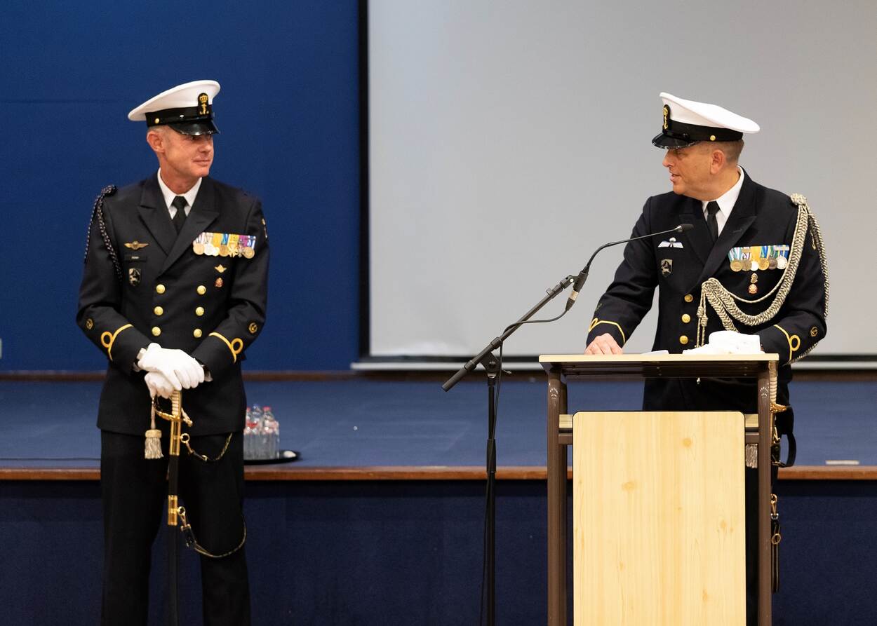 Ze kennen elkaar al jaren. Begonnen hun loopbaan bij de mariniers. En hadden hun eerste plaatsing aan boord van de stoombevoorrader Hr.Ms. Poolster. Onlangs passte de een de hoogste onderofficierspost binnen de Koninklijke Marine door naar de ander. In Den Helder gaf Chef d’Equipage CZSK adjudant ODOPS Hans Hijman in Den Helder zijn functie over aan adjudant ODND René Heeringa.