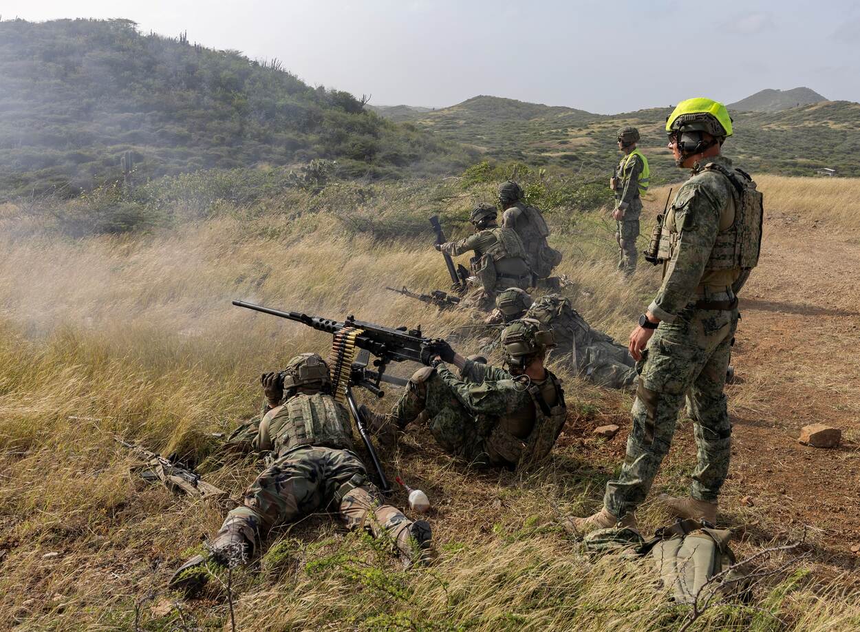 Majoor der mariniers Mark is enthousiast en niet zo’n klein beetje ook. In ongeveer 8 weken zette hij met zijn team een Live Firing Tactical Training (LFTT) in elkaar, waarmee je normaliter een klein jaar zoet bent. De LFTT die onlangs op Curaçao plaatsvond, was een doorslaand succes. Na afloop had het gros van de mannen van het 13e Raiding Squadron een hele grote glimlach op het gezicht. “Dit is heel anders dan wat we gewend zijn.”