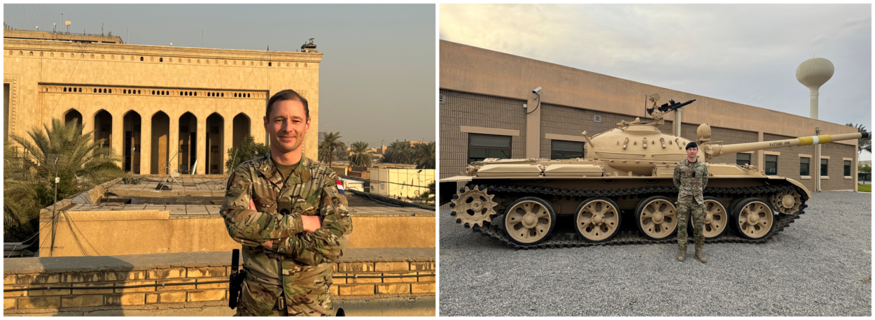 “15 jaar lang heb ik buiten Defensie gewerkt als advocaat(-partner). De laatste 10 jaar daarvan was ik reserveofficier en sinds 2023 ben ik beroepsmilitair bij de KM. Ik heb zelf gevraagd om deze uitzending. Ik vond dat ik als beroepsmilitair sowieso een keer op uitzending op het land moest zijn geweest. Mijn tijd in Irak duurt van december 2024 tot juli 2025. Ik ben ingedeeld bij de Amerikaanse anti-IS missie Combined Joint Task Force – Operation Inherent Resolve (CJTF-OIR) in Bagdad en wel binnen de CJ9. Onze main effort is het repatriëren van displaced persons en detainees vanuit kampen in Syrië naar (onder andere) Irak. Binnen de CJ9 ben ik executive officer, zeg maar: eerste officier. Wat betekent dat ik de Director CJ9, een Franse commodore, assisteer bij het reilen en zeilen van het directoraat. Dat doe ik door allerhande overleggen voor te bereiden en voor te zitten, (personeels)projecten op te pakken en de generaal te vergezellen op dienstreizen door het gebied. Wat daarbij helpt is dat ik in het verleden een stafopleiding heb gedaan aan de École Militaire in Parijs.”