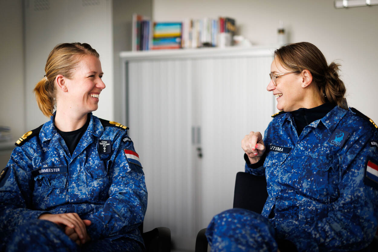 “Het voelt hier voor mij altijd als een warm nest”, zegt het hoofd Afdeling Doorstroom, luitenant ter zee 1 Marlies Bouwmeester. Zij is een jaar geleden zelf doorgestroomd na ‘slechts’ 4 jaar als ‘2OC’. “Als je goede mensen wilt behouden, moet je ze binden, al mist er ergens een vinkje”, oordeelt haar voorganger, luitenant ter zee 1 (SD) Janet Sijtsma.