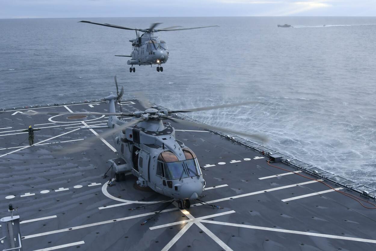 “Wij kwamen aan boord met 103 militairen – vliegers, bemanningsleden, engineers en ondersteunend personeel. De training draaide om 3 kernonderdelen. Om te beginnen het uitvoeren van nachtvluchten, waarbij vliegers operaties uitvoerden boven zee, onder minimaal zicht. Communicatie met zowel eigen als buitenlandse eenheden vormde hiervan een belangrijk onderdeel. Verder beoefenden we verticale bevoorrading, vertical replenishment (VERTREP, red.). Met helikopters brachten we voorraden en uitrusting naar andere schepen; een cruciale vaardigheid voor operaties ver van de eigen kust. Als derde trainingsdoel gold het veilig en goed uitvoeren van deklandingen en landingen op het strand. Hierbij werden zowel troepen als materieel afgezet binnen een realistische oefenomgeving.”