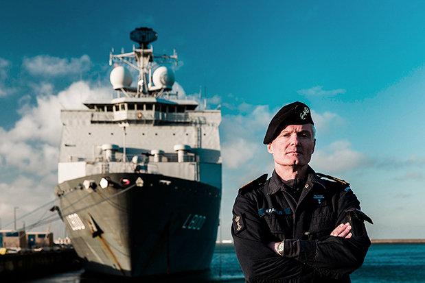“We zijn in alle fasen van het geweldsspectrum aanwezig”, begint hoofd maritiem hoofdkwartier kapitein-ter-zee Rob Kramer zijn uitleg. Hij is commandant militaire middelen maritiem en coördineert alle inzet van de marineschepen. “We werken tijdens deze nationale operatie heel nauw samen met civiele autoriteiten zoals de politie en de kustwacht en binnen Defensie met het Commando Luchtstrijdkrachten en de Marechaussee.”