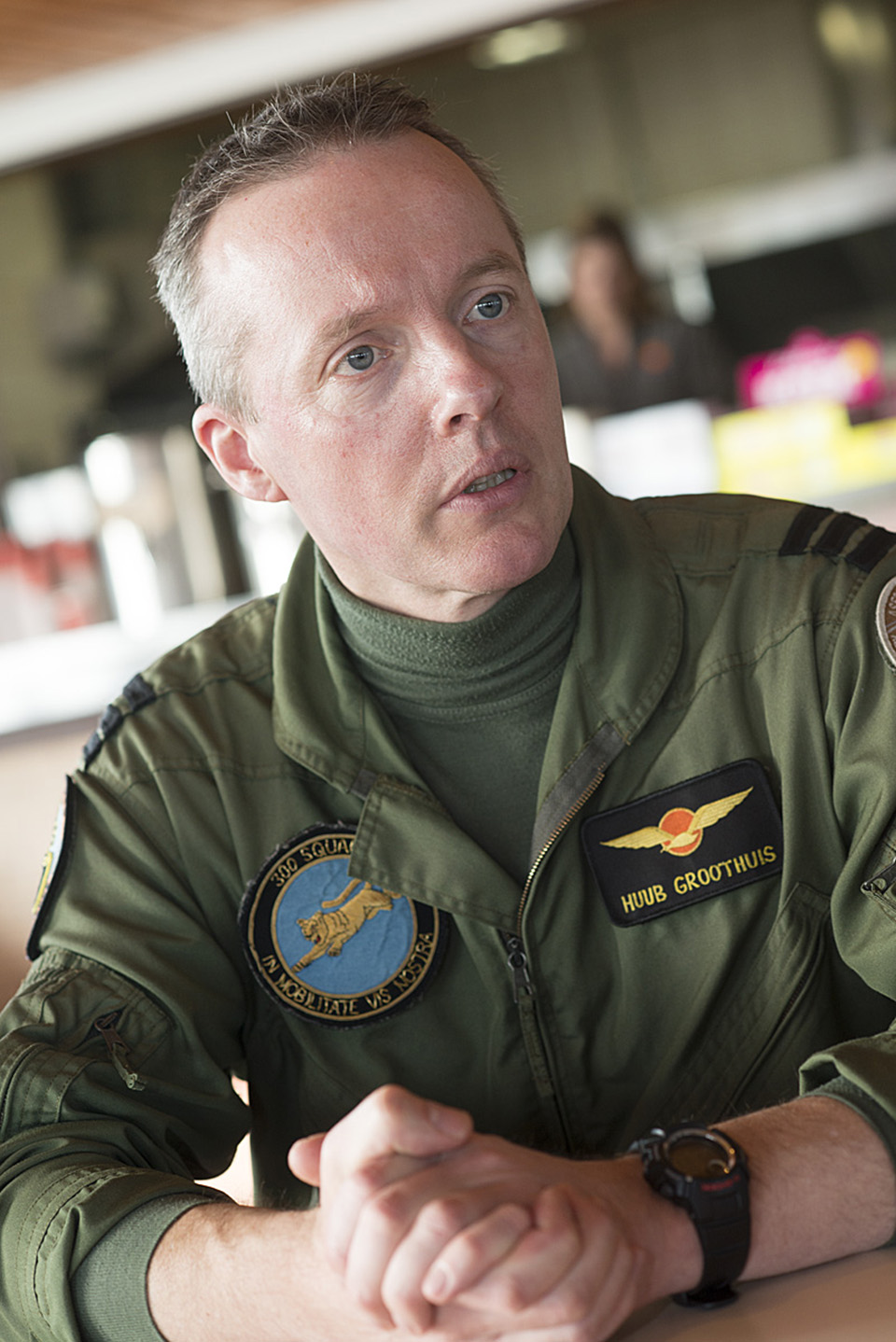 Op steenworp afstand van de theaterhangar ‘Soldaat van Oranje’ staan vanaf vandaag 19 defensie- en politiehelikopters. Oud marinevliegkamp Valkenburg is tijdens de nucleaire wereldtop de thuisbasis van 500 defensiemedewerkers. Samen bewaken en beveiligen zij het luchtruim rond Den Haag.
