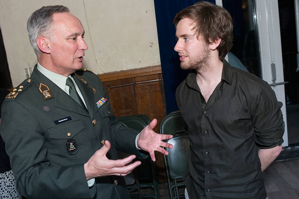 In de vragenrondes en het afsluitende debat komt een veelheid aan onderwerpen aan bod. Sebastiaan (werktuigbouwkunde) heeft aardig wat familieleden met een defensieachtergrond en wil weten of in deze tijd van krimpende budgetten nog voldoende doorgroei mogelijk is. Boudewijn vraagt zich af “of je als defensie-ingenieur ook zelf dingen ontwikkelt, of doet de industrie dat?” En Birgit vindt het uniform wel cool, maar zegt moeite te hebben met ‘discipline zonder uitleg waarom’. Steffan Norberhuis mag al snel in de praktijk kennismaken met de leuke kanten van het defensiebedrijf. Hij verdient als winnaar van het debat een rondvlucht in een helikopter.