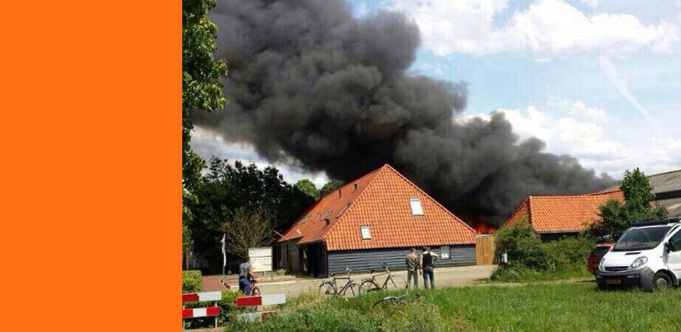 De vuurzee begon in een bedrijfspand en sloeg over naar omliggende percelen, waaronder een boerderij met rieten dak.