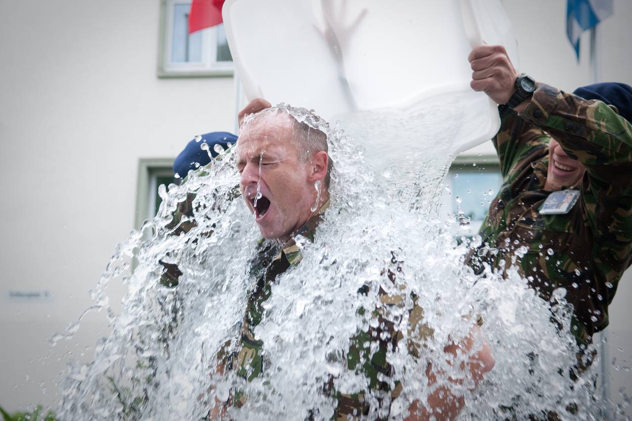 Manschappen, eenheden en commandanten krijgen in de zogeheten ice bucket challenge de volle laag. Allemaal om meer bekendheid te geven aan en geld in te zamelen voor onderzoek naar ALS, een verwoestende neurologische ziekte. Ook luitenant-generaal Mart de Kruif, Commandant Landstrijdkrachten (foto) en zelfs de Commandant der Strijdkrachten ontkwamen er niet aan. Een kleine greep uit de challenges.