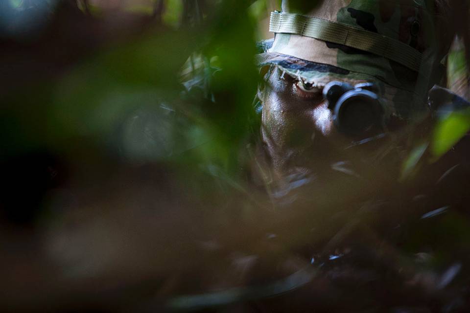 Maar de jungle in het Centraal-Amerikaanse land kan ook keihard zijn. Wie dit regenwoud onderschat, vraagt om problemen. Planten met bladeren zo groot als ledematen, bomen waarvan de hele bast bestaat uit stekels ter grootte van flinke injectienaalden en lianen die kriskras door de jungle groeien. Deze kluwen begint aan de rivieroever en gaat door tot de bergtoppen. Iedere verplaatsing vertraagt tot een slakkenpas. Ver vooruit kijken kan nauwelijks. Misschien een paar meter, dat is alles. De militair naast je is nauwelijks te zien door al het groen. Of nog moeilijker, de verscholen vijand.