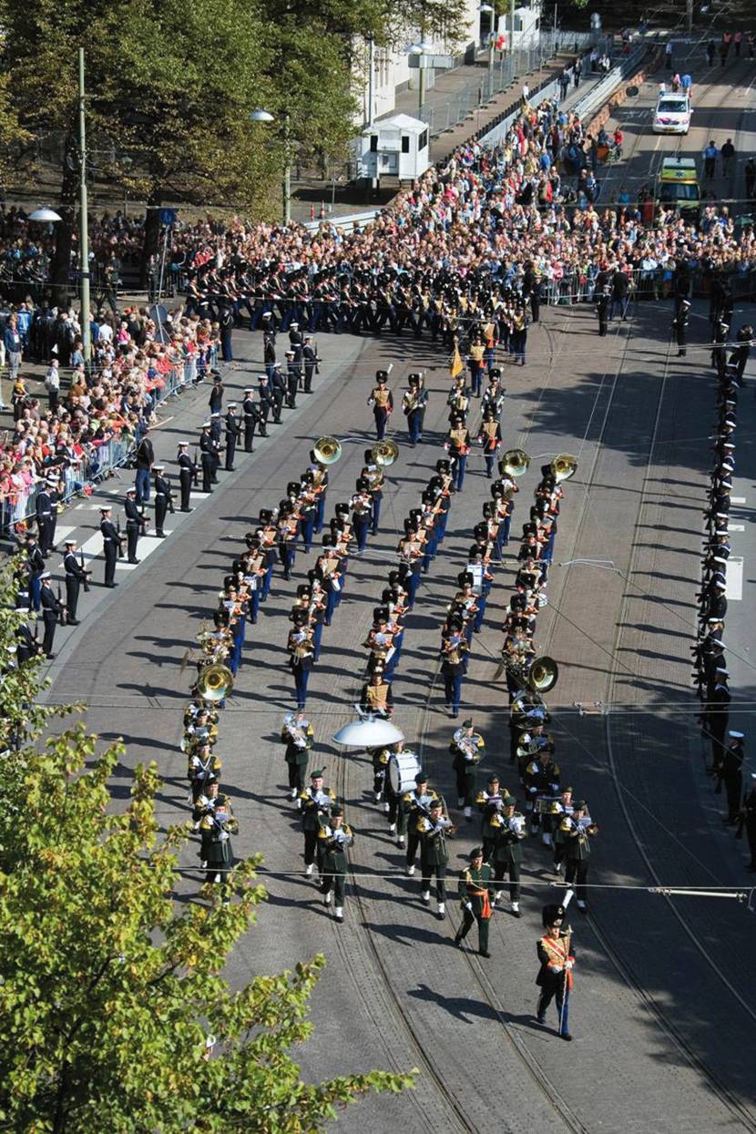 “Zolang er een leger is, zal er militaire muziek zijn. De historische functie, bijvoorbeeld het trompetgeschal en het doorgeven van allerlei signalen, wordt natuurlijk niet meer gebruikt. De militaire muziek heeft tegenwoordig vooral een ceremoniële functie. Maar die moet je niet onderschatten. Elk koninkrijk heeft een eigen orkest. We worden ingezet bij staatsbezoeken, herdenkingen, beëdigingen, commando-overdrachten en evenementen als de Nationale Veteranendag. We zijn het visitekaartje van de krijgsmacht. Ook bijvoorbeeld bij grootschalige oefeningen. In ruil voor mogelijke overlast geven we de regio vaak een cadeautje terug, in de vorm van een relatieconcert.”