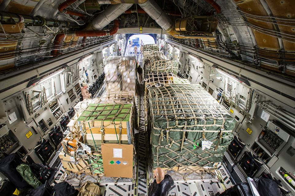 Mali ligt niet bij de deur. De bevoorrading van de Nederlandse missie in het West-Afrikaanse land gaat dan ook in het groot en door de lucht. Onlangs werd op Vliegbasis Eindhoven een C-17 transportvliegtuig volgeladen met spullen voor de militairen in Mali. Niet alleen voor de Nederlanders: er ging ook Ests, Fins, Lets en Zweeds materieel mee. Voor de luchtmammoet een standaardvracht. Hij blijft het de komende maanden dan ook doen voor die landen, is de afspraak. Voor de aanschouwer is het wel een indrukwekkend plaatje.