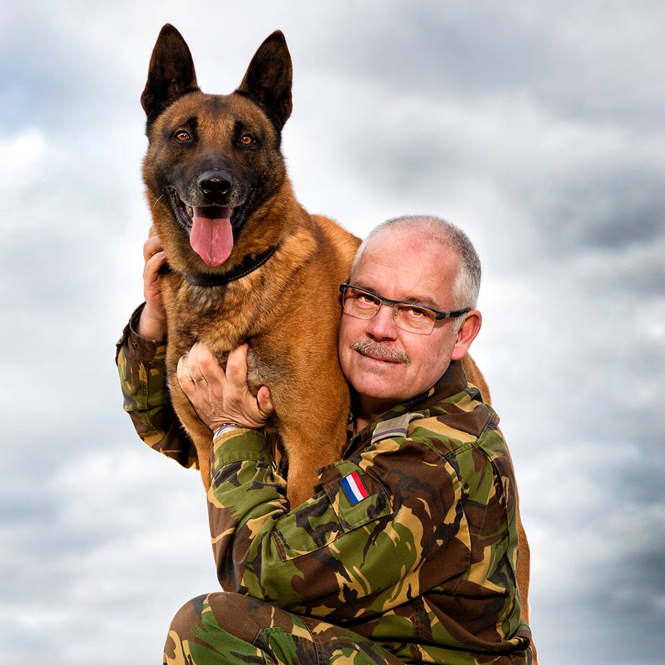 Met een hond bouw je een kameraadschappelijke band op die soms dieper is dan met collega’s. Met Mika was ik naar Afghanistan, dat was echt mijn lievelingshond. We waren altijd samen. Ze wilden dat Mika met een ander vliegtuig terugvloog, dat pikte ik niet. Op de terugvlucht zat hij gewoon netjes naast me. Honden zijn de beste militairen, zeg ik weleens. Ze staan altijd te springen om aan de slag te gaan, en dat alleen maar voor een handje brokken en een bakkie water.”