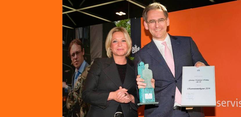 De award ‘Reservistenwerkgever 2014’ is voor Grontmij Nederland. Dat bedrijf heeft zich het meest ingespannen om zijn werknemers militair te laten zijn. Minister van Defensie Jeanine Hennis-Plasschaert reikte de onderscheiding vorige week uit in het Nationaal Militair Museum in Soesterberg.