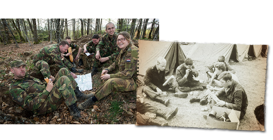 Onder de militairen is een enkeling te vinden die eerder op het Franse oefenterrein is geweest, want kleinere groepen - zoals van 12 Infanteriebataljon – reisden in de jaren ‘90 nog wel eens af. Niet zoals nu en in de jaren '60 met volgeladen treinen. Adjudant Fred Dijkhuizen heeft ondanks dat hij er voor de eerste keer is, een bijzondere binding met La Courtine. De vader van de geboren Hagenees, inmiddels 75 jaar oud, verbleef in 1963 in het Franse plaatsje. Daar vertelde hij prachtige verhalen over. Dat ze gewoon met een witte vlag door de linies reden en dan lekker eieren stonden te bakken, terwijl de anderen in hun schuttersputje gevechtsrantsoenen aten.