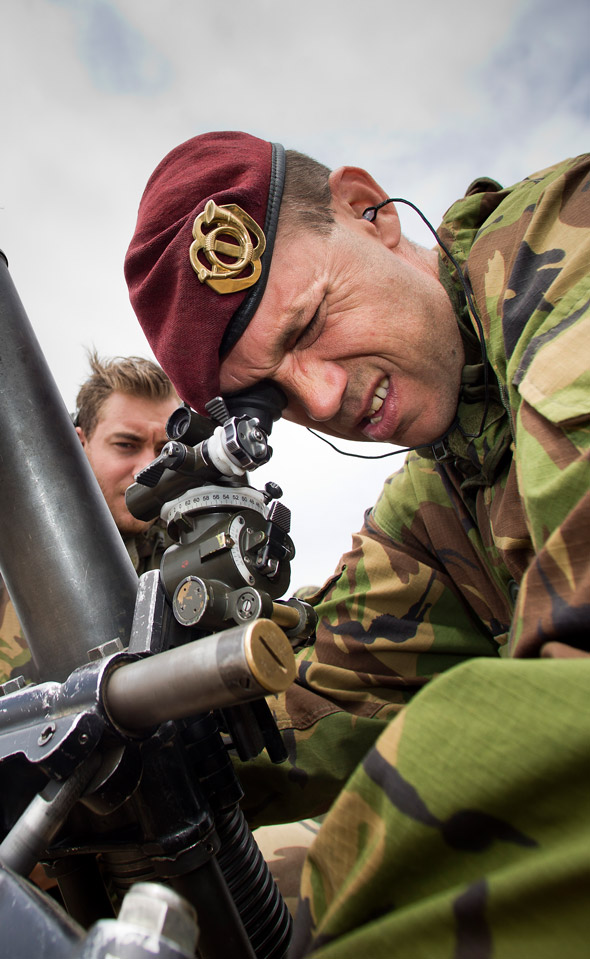 Sergeant-majoor Angelo aan het werk met een mortierstuk van de Tjechen.
