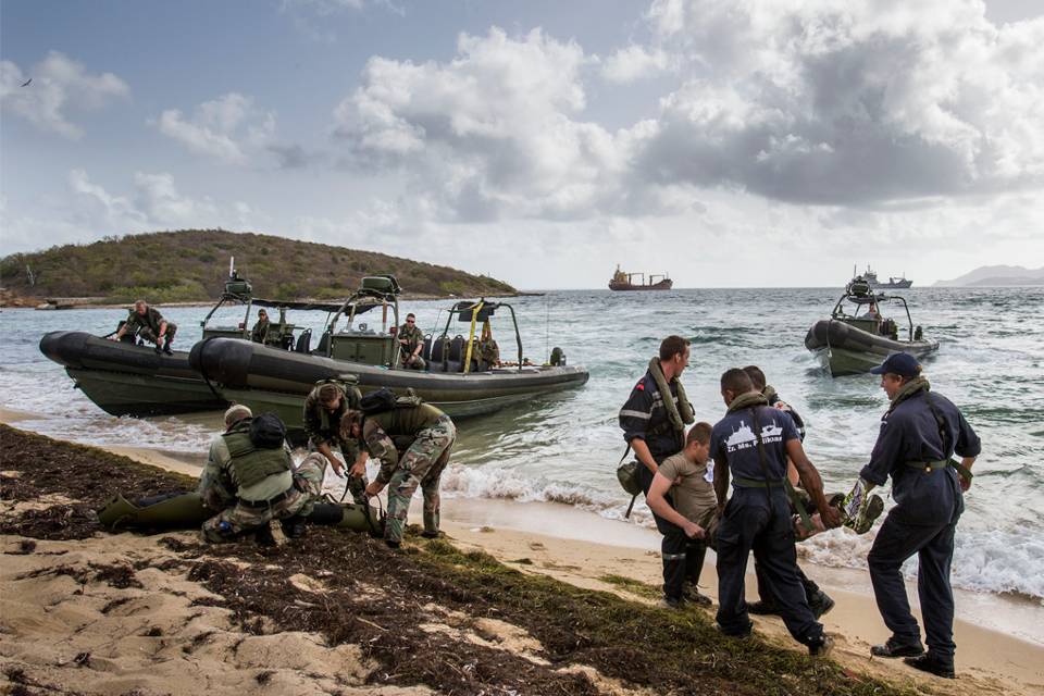 Een Franse troop infanteristen vanuit Martinique, het 32ste Raiding Squadron Aruba, genisten van de landmachtcompagnie, leden van de Curaçaose en Arubaanse Militie, ondersteuningsschepen van beide landen en talloze (civiele) hulpdiensten: HUREX 2015 is niet alleen de grootste jaarlijkse oefening van zijn soort in het Caribisch Gebied, maar ook vrij complex. Oefeningen als deze zijn er dan ook om procedures en samenverwerkingsverbanden te stroomlijnen zodat snel en effectief opgetreden kan worden als de nood echt aan de man is.