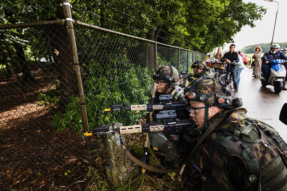 Dat luchtmobiele eenheden steeds vaker in dichtbevolkte gebieden oefenen, heeft te maken met de aard van de huidige conflicten. Van der Hoeven: “Het merendeel van onze missies vindt plaats tussen de burgers. Om die reden hebben we een situatie gekozen die aansluit bij de realiteit.” De militairen trekken veel bekijks op straat. Aan de waterkant staat de 62-jarige Sjan Elissen. Samen met een vriendin kijkt ze aandachtig naar de groep militairen die een wateroversteek voorbereidt. De mannen zijn druk in de weer met het maken van een drijfpakket, zodat al hun spullen droog de overkant bereiken. “Ik ben speciaal na het sporten deze kant opgelopen”, zegt Sjan lachend terwijl de militairen om haar heen zich tot op hun ondergoed uitkleden. “Voor ons is dit leuk om te zien en voor de mannen hopelijk erg nuttig”, vertelt ze. Volgens soldaat-1 Anthony Jackson zijn de reacties van omstanders positief. “Mensen zijn erg aardig. Ze maken gemakkelijk een praatje of stellen vragen. Dat maakt het voor ons ook leuk en soms is het gewoon prettig om te worden aangemoedigd.”