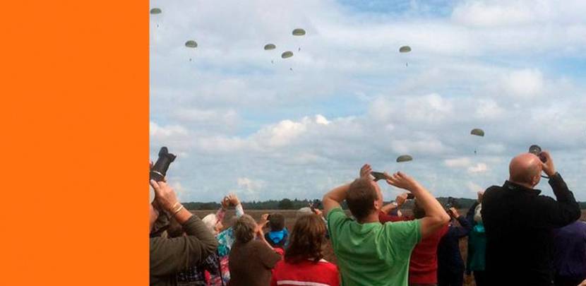 onlangs boven de Ginkelse Heide in de voetsporen van hun geallieerde broeders.