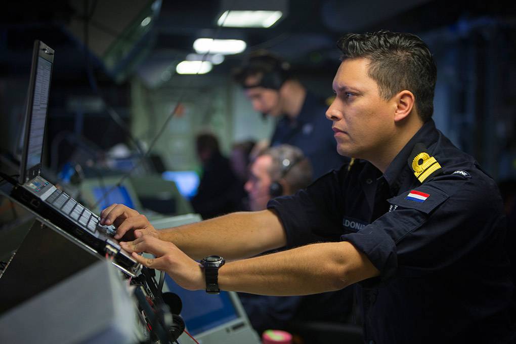 Vanuit de commandocentrale van Zr. Ms. De Zeven Provinciën wordt alles gecoördineerd.