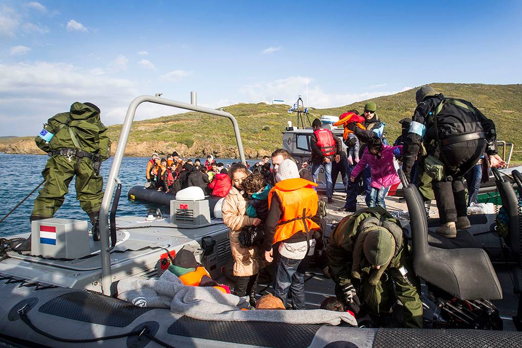 De grenspatrouilles worden uitgevoerd door personeel van de Griekse kustwacht en de Koninklijke Marechaussee. Met snelle motorboten, bestuurd door Nederlandse mariniers, bewaken zij het gedeelte van de zee tussen Turkije en Chios.