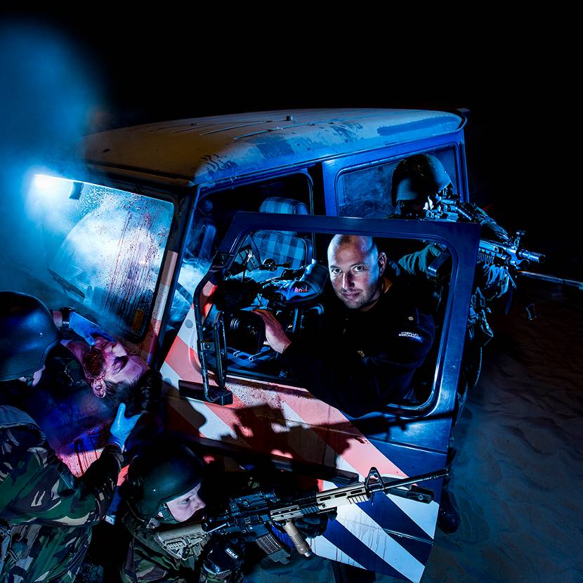In dit vak moet je brutaal zijn, je hebt geen tweede kans. Als ik het niet heb, kan ik het er later niet bijtekenen. Die les leerde ik als 15-jarige fotograaf bij een regionale krant. Een paar jaar later startte ik als dienstplichtig fotograaf bij de marine. Al snel reisde ik van hot naar her. Alles was nieuw en avontuurlijk. Later stapte ik over naar de marechaussee. Behalve het pak veranderde er verder weinig. Ik maak nog steeds beelden van de hele krijgsmacht. Inmiddels doe ik dat met een videocamera in plaats van met een fototoestel. Er is namelijk steeds meer behoefte aan filmmateriaal.