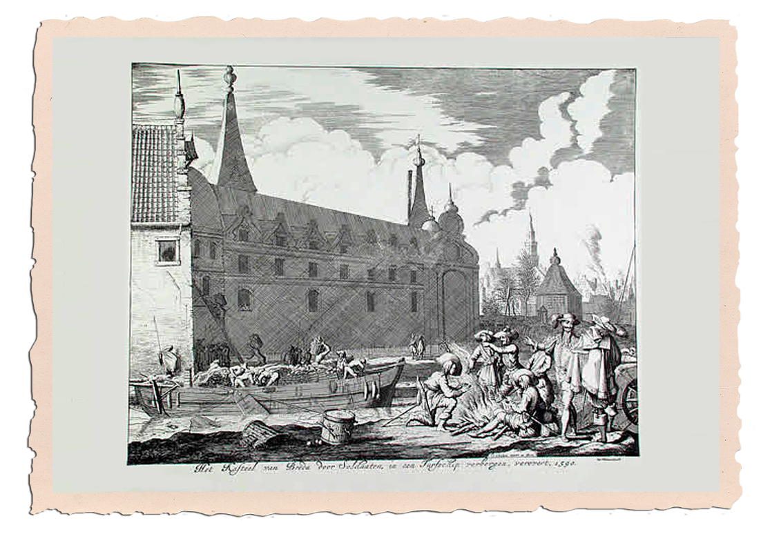 5 jaar na de moord op Willem van Oranje, middenin de 80-jarige oorlog, vond de 22-jarige stadhouder prins Maurits het tijd om Breda in te nemen op de Spanjaarden. Dit zou het moreel van De Republiek veel goeds doen. Maar hoe? Een turfschip met 70 verscholen soldaten zou de stad binnenvaren. Aangekomen, openden zij de poorten van de stad. Dat laatste bleek echter overbodig. Eenmaal binnen ontdekte een Italiaanse wachter de soldaten, waarop de Nederlanders in actie kwamen. Die nacht doodde de Republiek 37 Zuidelijke militairen. Toen zowel aan de noordelijke- als zuidelijke poort 10.000 manschappen stonden te trappelen om de stad in te nemen, gaf het stadsbestuur zich over.