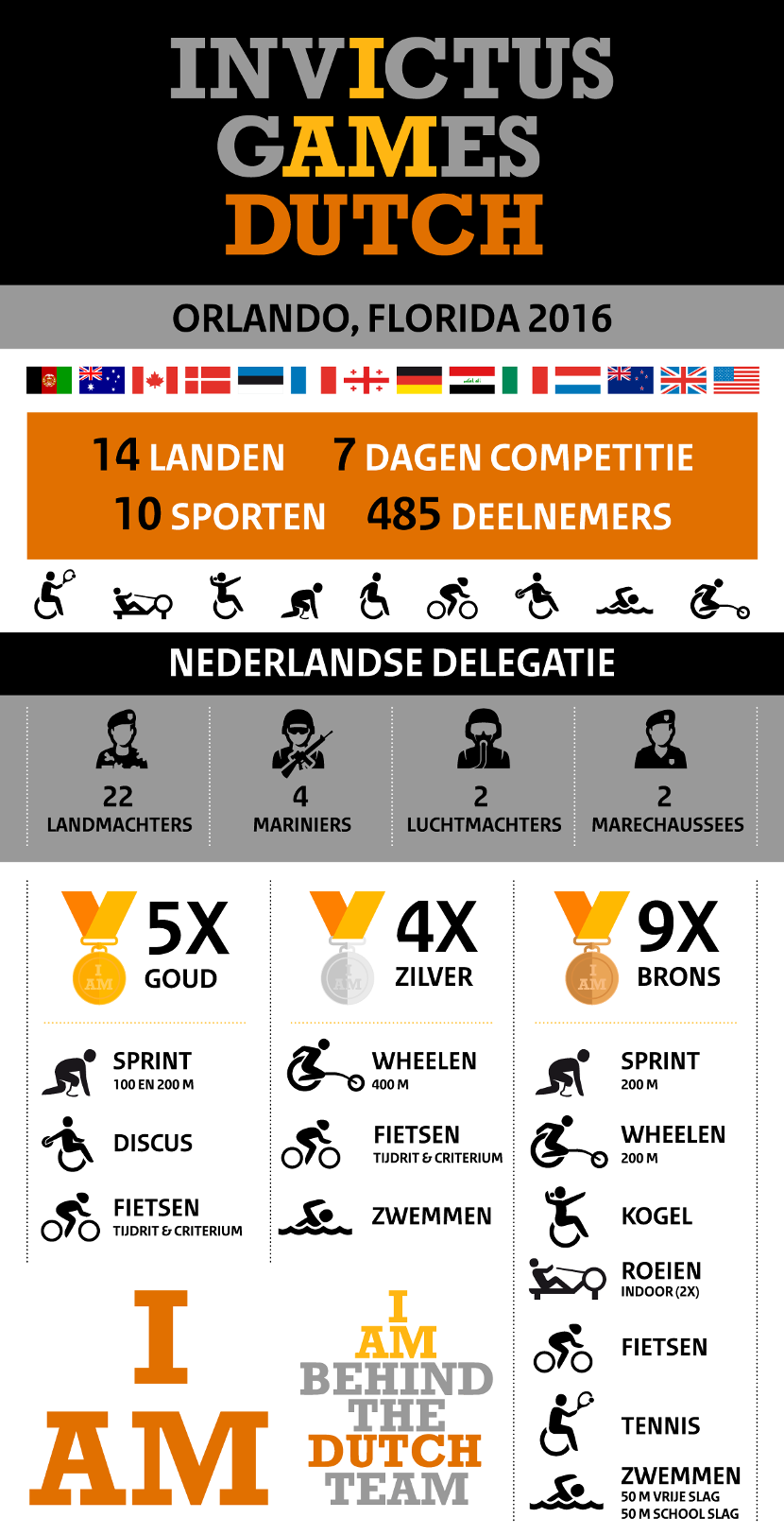 Aan de start staan. Dat is bij de Invictus Games al een overwinning op zich. In dit internationale sportevenement voor gewonde (oud-)militairen draait het niet om de prijzen. Goud is: weer kunnen meedoen, opnieuw onderdeel zijn van een team. Samen knokken. Van 6 tot en met 12 mei inspireerden de sporters elkaar en vele duizenden toeschouwers en televisiekijkers met hun strijdlust.
