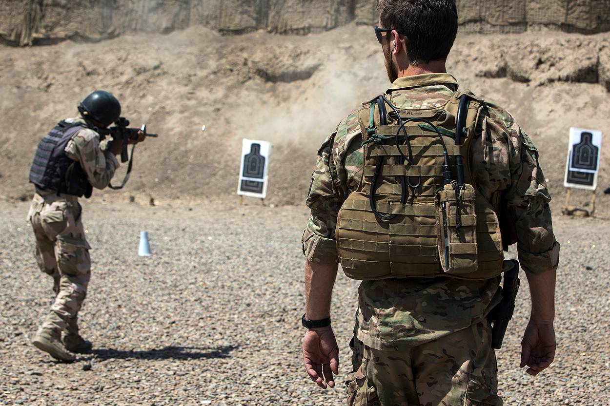Instructeur sergeant-majoor Qaisar, rechts in beeld: “De cursus waarin ik les krijg van Task Force 631 is in vele opzichten nuttig. Ten eerste word ik fysiek geprikkeld waardoor ik een nog betere conditie ontwikkel. Daarnaast vind ik de lessen in Close Quarter Battle enorm interessant. Ik doe zaken nu totaal anders dan vroeger. Toen rende ik een gebouw in zonder te checken. Nu opereer ik behoedzamer en let ik beter op explosieven en de positie van de rest van mijn peloton. Dit is uitstekend te gebruiken in de strijd tegen ISIS. Naast praktijkinstructies geven de Nederlanders me handvatten voor het voorbereiden, uitvoeren en evalueren van mijn lessen. Alle informatie die ik kan krijgen, wil ik hebben. Ik wil dat ze me ook uitleggen hoe we een bomauto kunnen verslepen zonder gevaar voor eigen troepen. Daar hebben we tijdens recente gevechten veel mee te maken. Hopelijk leert de coalitie me dat in de toekomst nog.”