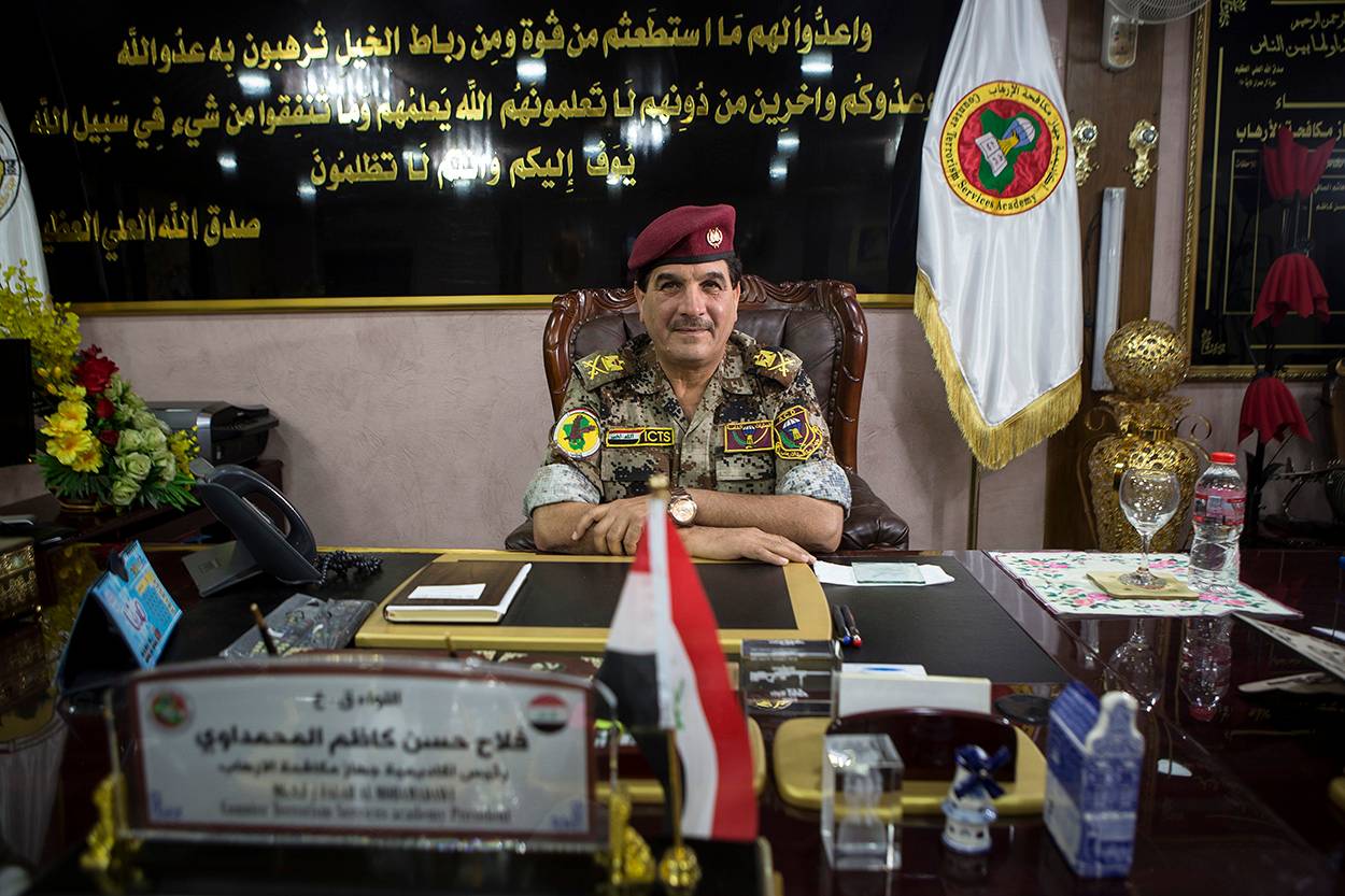 Generaal-majoor Falah, commandant van de Counter Terrorism Services Academy: “De samenwerking met de coalitie, en in het bijzonder de Nederlanders, helpt ons enorm. Iedereen ziet het gewin voor de Iraakse bevolking en de maatschappij. Je hoort het zelfs in de media. Waar ik de meeste waarde aan hecht? Alle onderdelen zijn essentieel. Ik ben blij te zien dat Task Force 631 gefocust is op de commandocursus. Daarnaast ben ik getuige geweest van de moeite die de Nederlanders hebben gestoken in het bouwen van 9 klaslokalen voor de medische cursus. Dat wordt bijzonder gewaardeerd. Het is ook mooi om te zien dat jullie met ons meedenken als het gaat om aanpassen van trainingen. Want als de situatie op het strijdtoneel wijzigt, moeten wij flexibel zijn en meegaan met die ontwikkelingen. Mede dankzij de inbreng van Task Force 631 zien we dat onze trainingen hun vruchten afwerpen en we militairen afleveren die klaar zijn voor de strijd.”