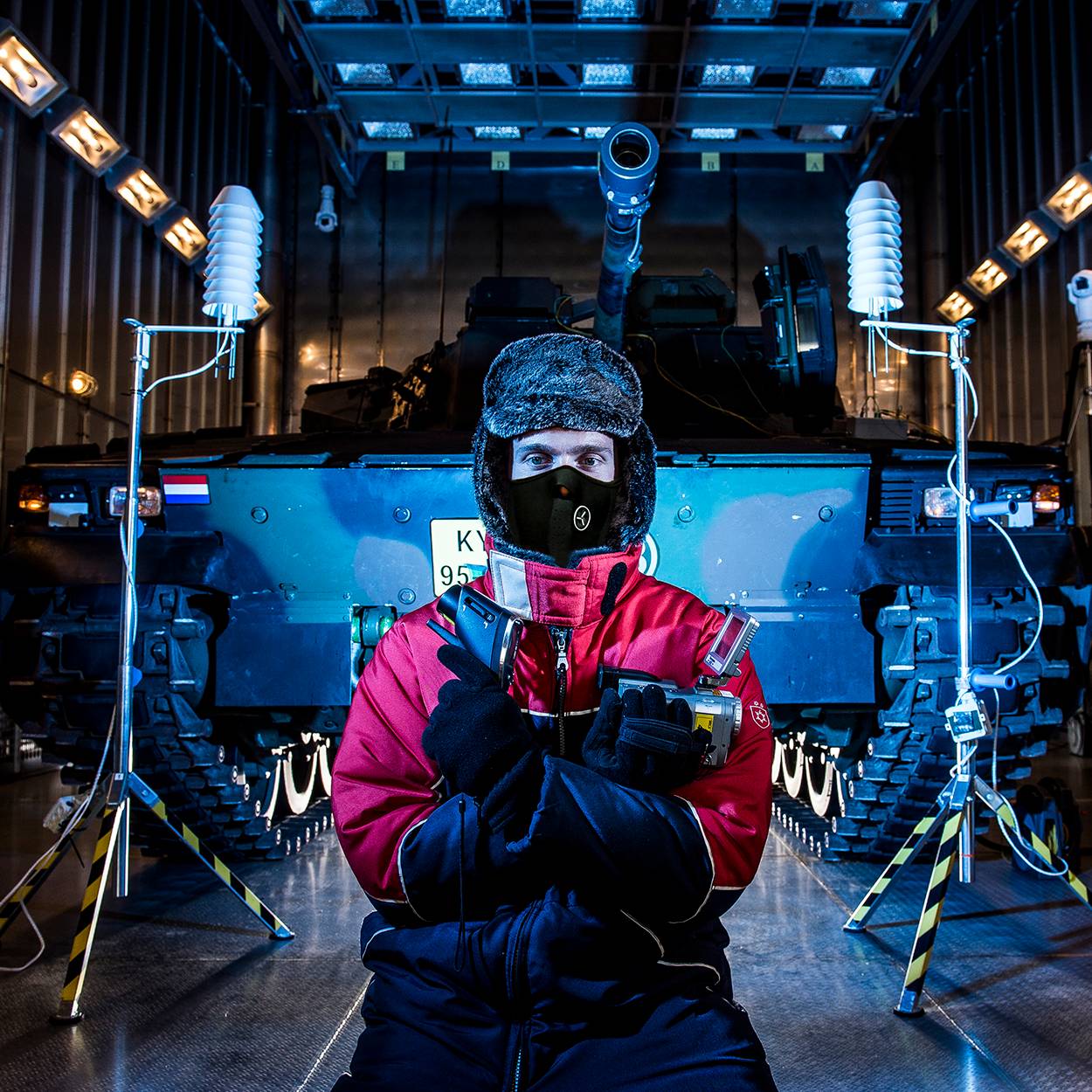 We testen zowel nieuw als bestaand materieel. Klimaatproeven van producten die we al langere tijd in gebruik hebben, beperken zich meestal tot bepaalde problemen die de gebruiker ervaart of specifieke klimaattesten met betrekking tot het gebied waar het materieel op korte termijn ingezet wordt. Vaak gaat het om testen van basisfunctionaliteiten zoals het bevriezen van deurrubbers en de werking van de verwarming of airco bij extreme buitentemperaturen. Verder controleren we natuurlijk of de krachtbron en specifieke apparatuur zoals computers aan boord van een voertuig nog functioneren. Binnenkort gaan we een nieuw Barracuda camouflagesysteem van het pantserrupsvoertuig CV9035NL beproeven. Het net zou namelijk een positieve werking hebben op de te hoge temperatuur bovenin de toren van het voertuig bij een warm klimaat. Aan ons de taak om te onderzoeken of het systeem daadwerkelijk een verbetering geeft.”